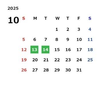 10月の定休日のご案内です