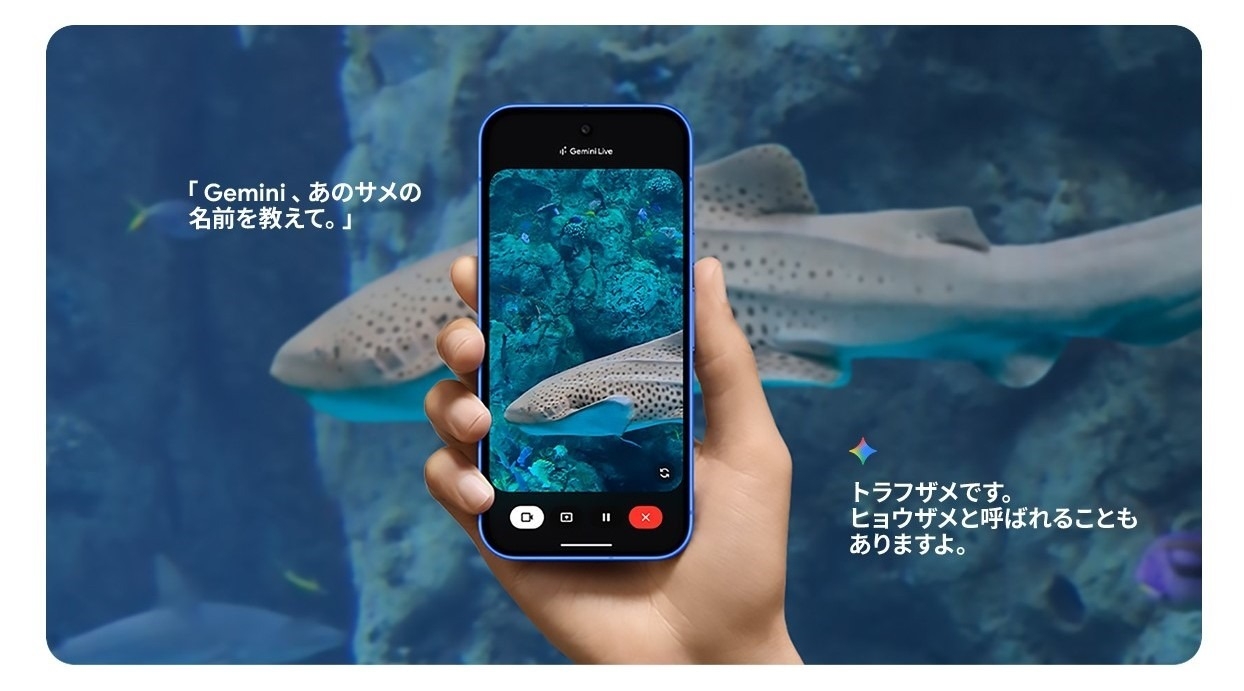 初めて見たものが何か分かるとうれしいですね。そんなときは Gemini Live を使ってスマートフォンのカメラを向けるだけで質問できます。GooglePixel のカメラや画面に映るものについて、AI アシスタントのGemini が目の前のものに関する詳しい情報を教えてくれます。