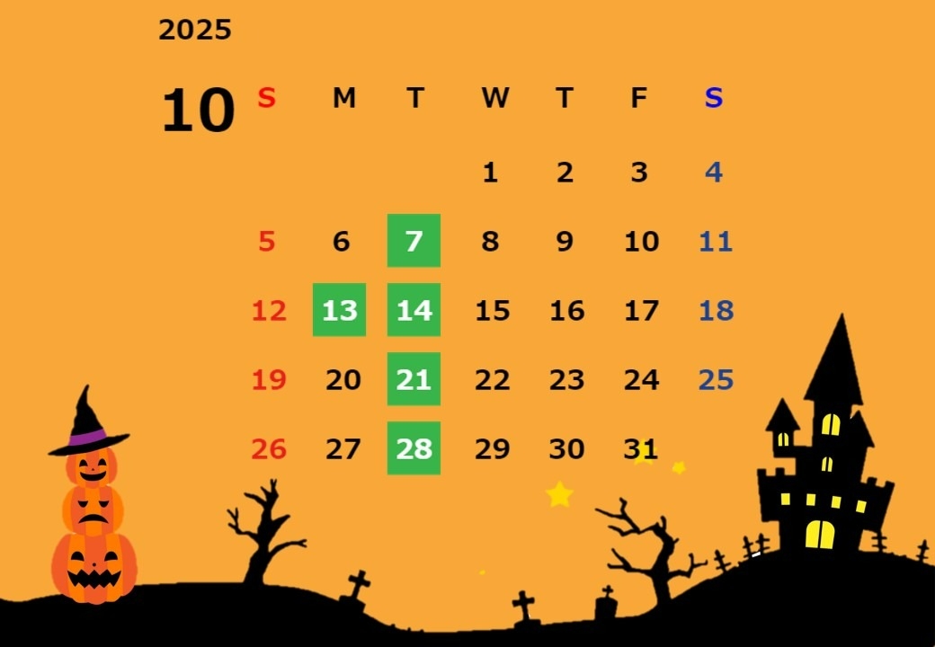 🎃10月の営業日のご案内 2025.09.26 営業日のご案内 大阪トヨタNorth163緑地北店 こんにちは、 大阪トヨタNorth163緑地北店です。 ご覧いただき ありがとうございます_(._.)_ ようやく秋の気配が訪れ、 過ごしやすい日が 多くなってきましたね🍂 今回は 10月の営業日のご案内を させていただきます。 ■定休日 (店舗により定休日が異なります。 詳細は店舗ページの営業日 カレンダーをご確認ください。) 10月は毎週火曜日の定休日に加えて 第2月曜日の13日が 休みになっております。 何卒よろしくお願い申し上げます。 前の記事へ 店舗ブログ一覧に戻る 次の記事へ