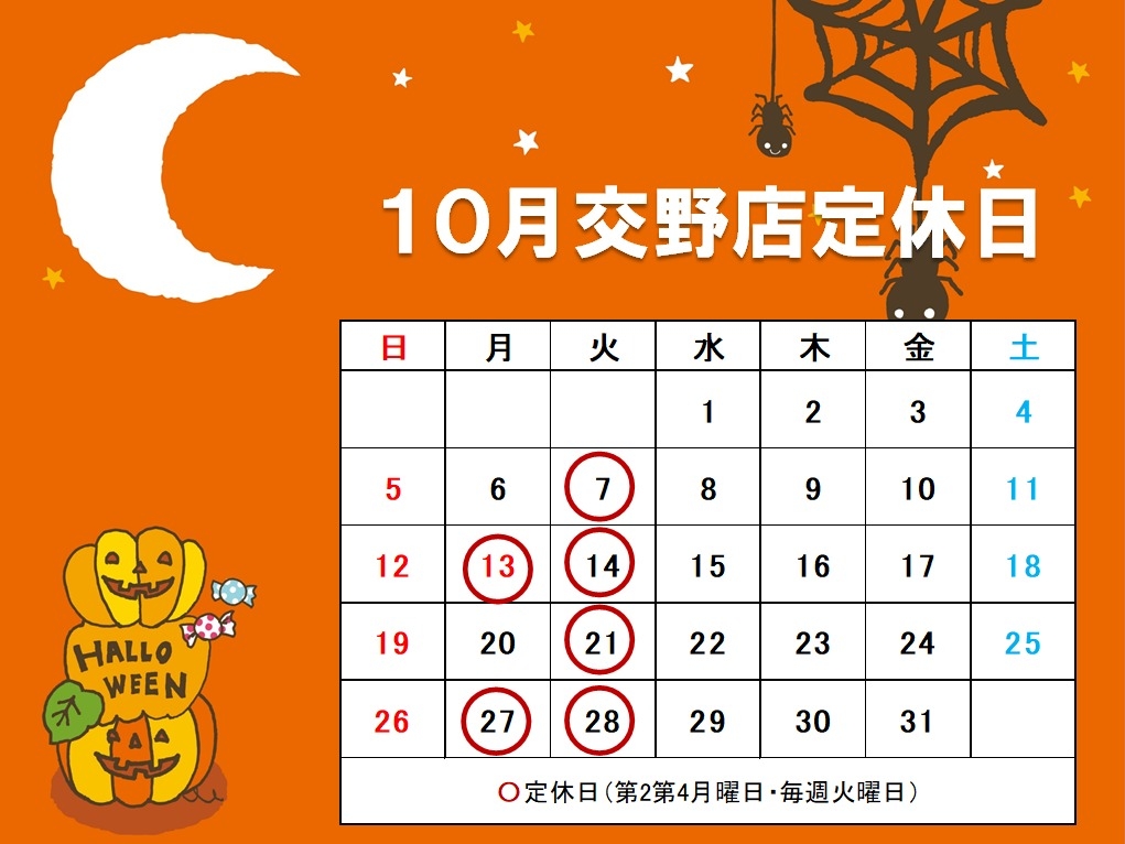 毎週火曜日と第2・第4月曜日が定休日となります。