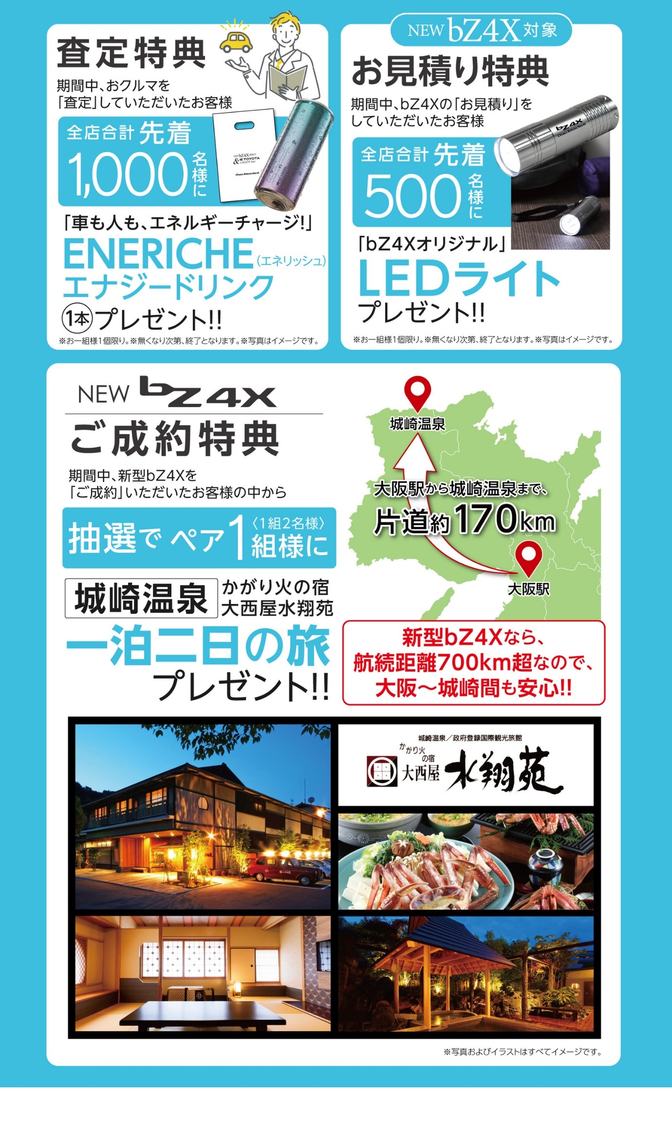 bZ4Xデビュー&E TOYOTAラインナップフェア開催します‼ 2025.10.15 新型bz4x 大阪トヨタNorth 高槻店 いつも高槻店のブログを ご覧いただき 誠にありがとうございます。 bZ4Xデビュー&E TOYOTA ラインナップフェア 開催します‼ 10月18日(土)・19日(日) 25日(土)・26日(日) 大阪トヨタNorth ↓フェアHP↓ イベント開催中 ・査定特典 ・bZ4Xお見積り特典 ・bZ4Xご成約特典 ご用意しています‼ BEYOND ZERO 今話題の 新型bZ4Xを中心に 「地球という美しい故郷を 次世代に引き継ぐ」 E TOYOTA ラインナップです! E TOYOTA ↓詳しくは↓ 皆様のご来店 高槻店スタッフ一同 心よりお待ちしております。 k 前の記事へ 店舗ブログ一覧に戻る 次の記事へ