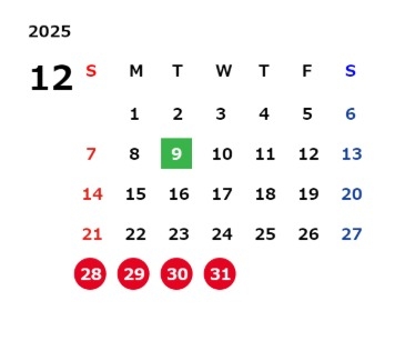 今年の営業は12月27日までです!