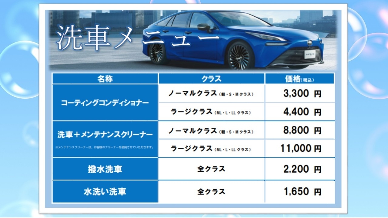洗車料金が一部改定となりました。