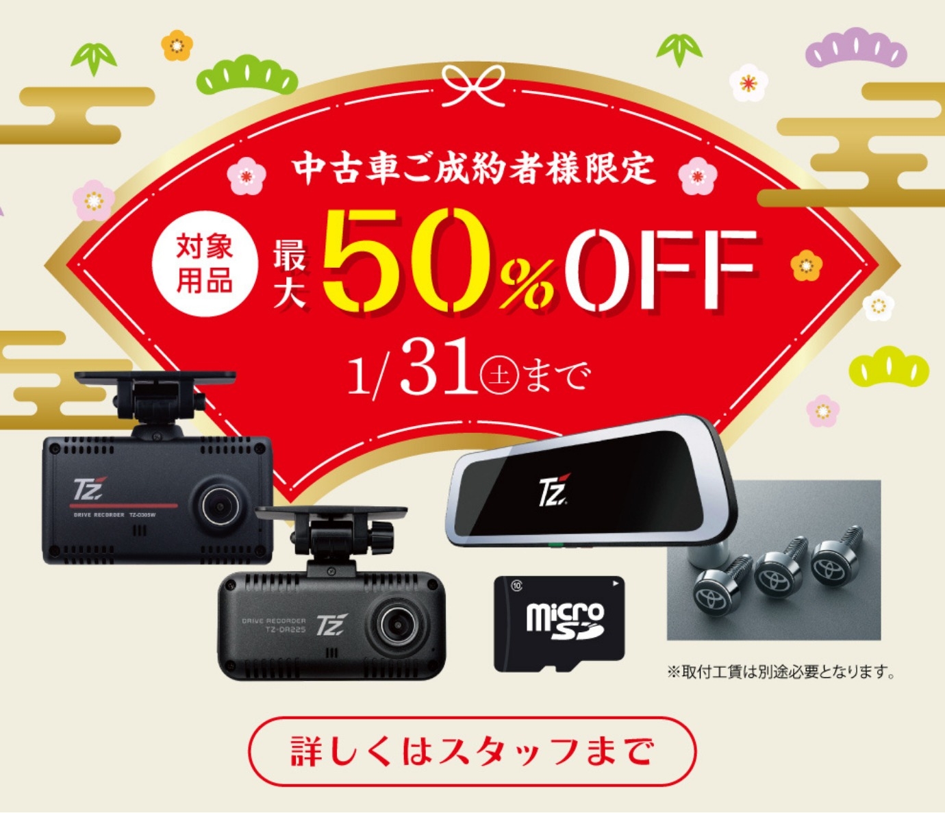 中古車限定ご成約のお客様対象商品最大50%OFFもご用意しております😍