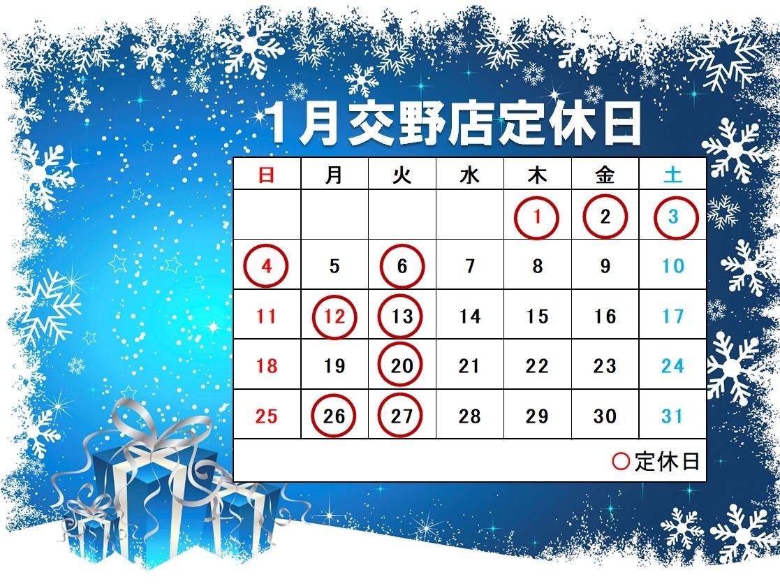 年末のお休みもあるので早めのご案内をさせていただきます。