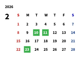 2月の西店カレンダー