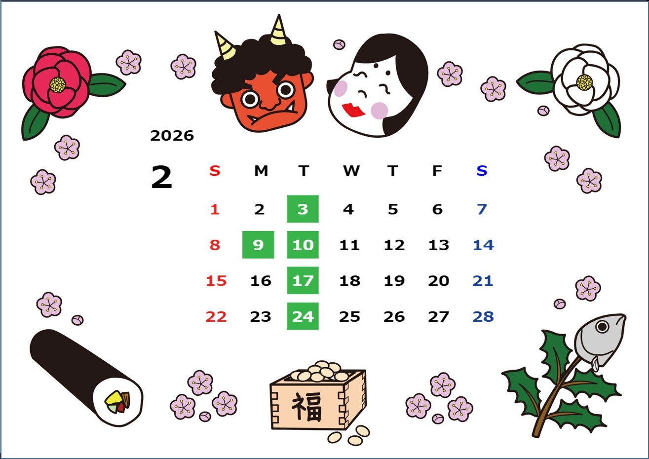🌸👹2月営業日のご案内👹🌸