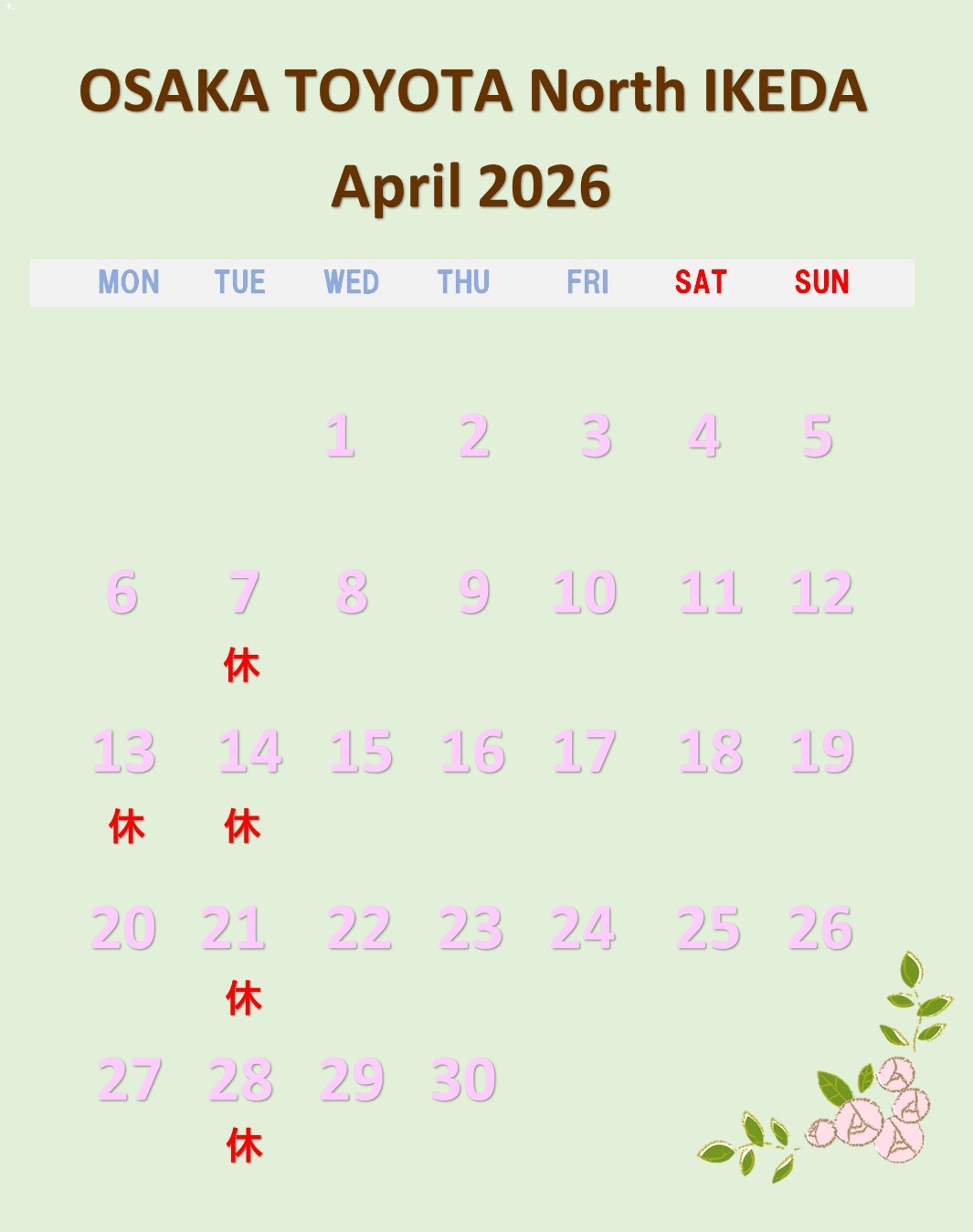 🌸🌸大阪トヨタNorth池田店4月営業案内🌸🌸