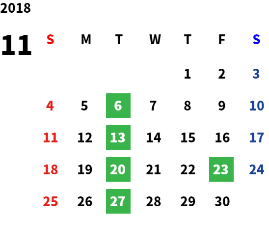 \\みなさま こんにちは// ⭐大阪トヨタNorth 福島店⭐ のブログをご覧いただき 誠にありがとうございます💖 本日は 11月定休日のご案内です ♡♡♡ 緑色が定休日です。 皆様のご来店 心より お待ちしております⭐ 大阪トヨタNorth株式会社 福島店 福島区福島5-17-2 TEL 06-6455-8600