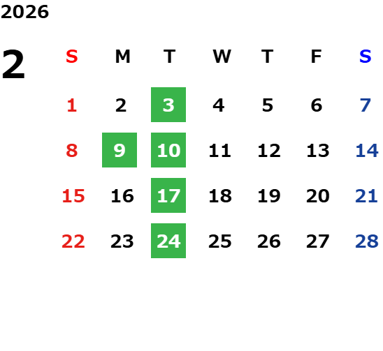 毎週火曜日・第二月曜日