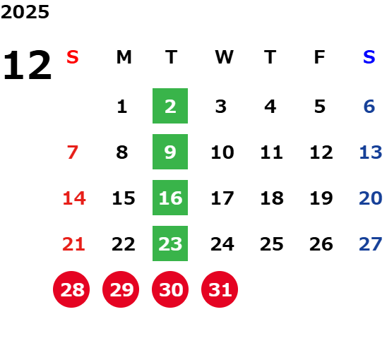 サンテラス箕面です☆彡 いつもブログをご覧いただき ありがとうございます \(*^-^*)/ 2025年も残すところ 一ヶ月弱… 時の流れが年々早まっています 充実して過ごせたということかなと 思っていますが 皆様は2025年を いかが過ごされましたか? 12月は イベントが多く 忙しい月です やり残したことが無いように 計画的に 過ごしたいですね (*^-^*) さて 12月の サンテラス箕面営業日をお知らせします🚙 ■定休日(店舗により定休日が異なります。 詳細は店舗ページの営業日カレンダーを ご確認ください。) ●一斉休業 12月は長期お休みをいただきます 年末年始を 安心して過ごして頂くために お車の点検は大切です🚙 ⛄タイヤの状態 ⛄バッテリーの状態 ⛄オイル交換 …などなど 気になることがございましたら お早めにお問い合わせください 12月のイベントについては 改めて ブログでもご案内させていただきます ヾ(≧▽≦)ノ お車のことならサンテラス箕面まで サンテラス箕面の詳細は こちらをクリック 📞072-729-8600