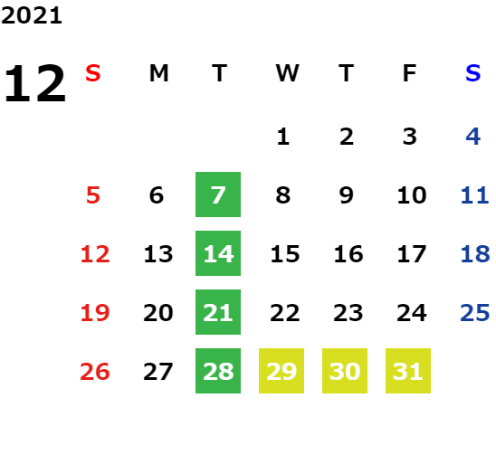 こんにちは 大阪トヨタNorth 野里店です いつも当店を ご利用いただき ありがとうございます 寒さがぐっと増えてきて いよいよ冬本番ですね 冬道も安心して お過ごしいただけるよう タイヤ交換や バッテリー点検も あ気軽にご相談ください 今回は12月の 営業日カレンダーの ご案内です □ 定休日 〇一斉休業日 店舗により定休日が異なります。 詳細は店舗ページの 営業日カレンダーをご確認ください。 〒555-0025 大阪市西淀川区姫里1-16-22 大阪トヨタNorth株式会社 野里店 TEL:06-6475-8600