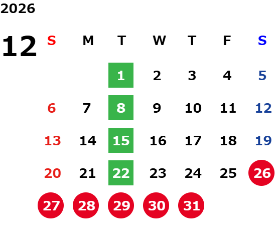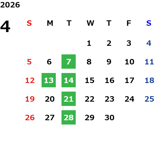 毎週火曜日・第二月曜日