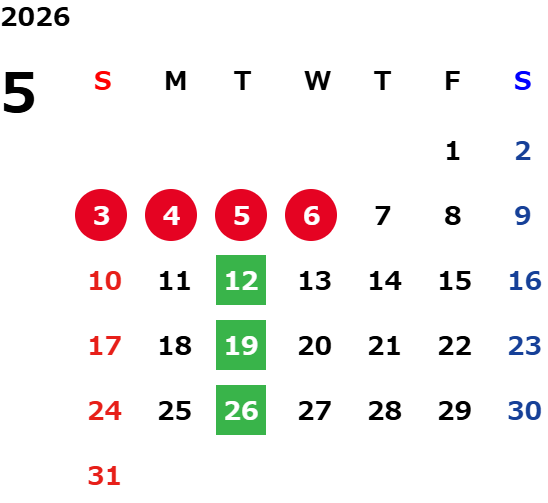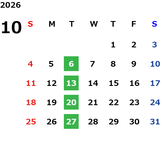 毎週火曜日・第二月曜日